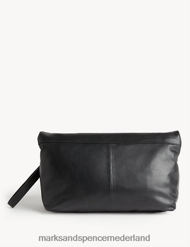 Marks & Spencer vrouwen leren clutchtasje zwart accessoires N8VZP1538