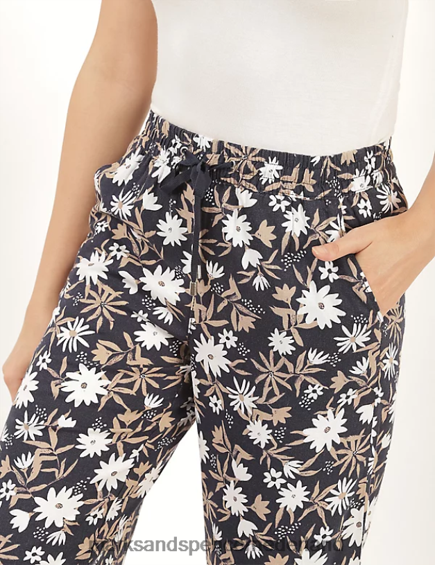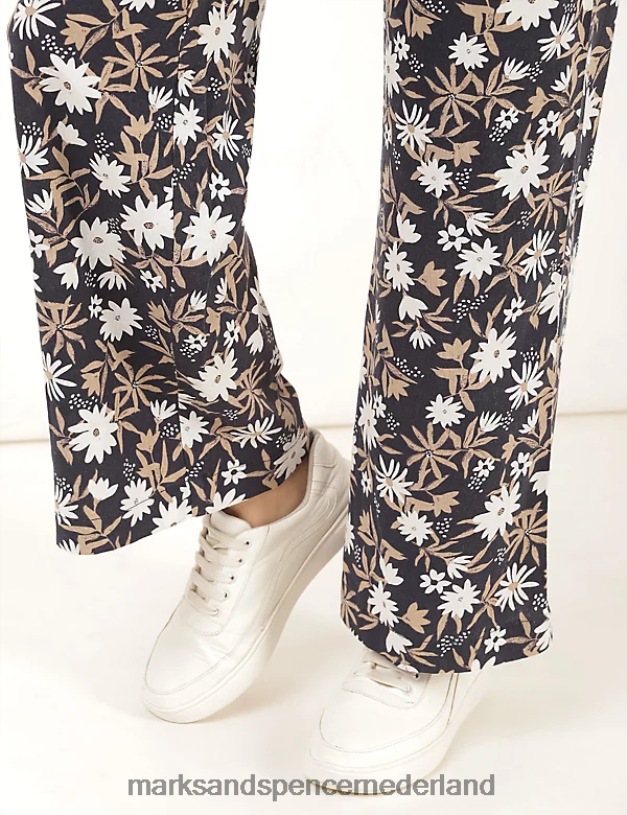 Marks & Spencer vrouwen bloemen op linnenviscosebasis marine kleding N8VZP3291