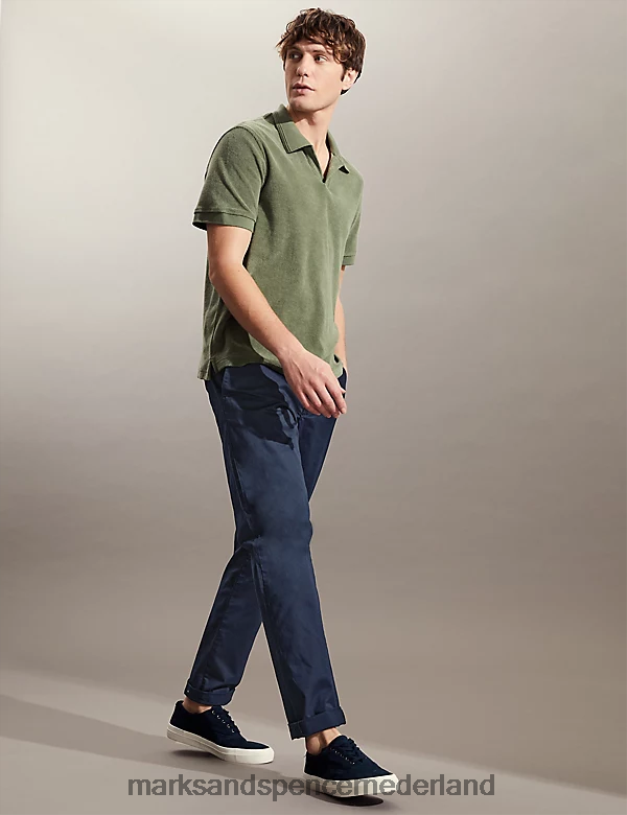 Marks & Spencer Heren Slim-fit stretchchino medium marine kleding N8VZP6900