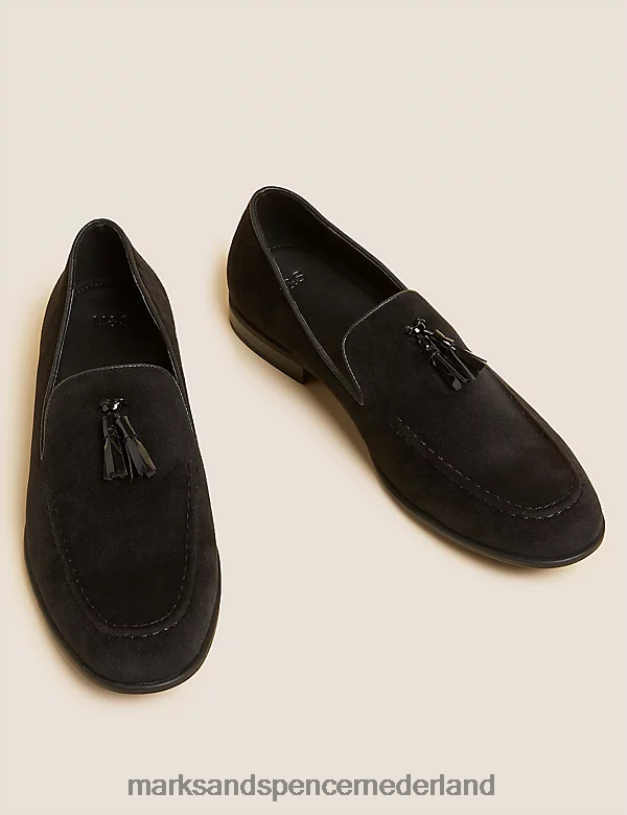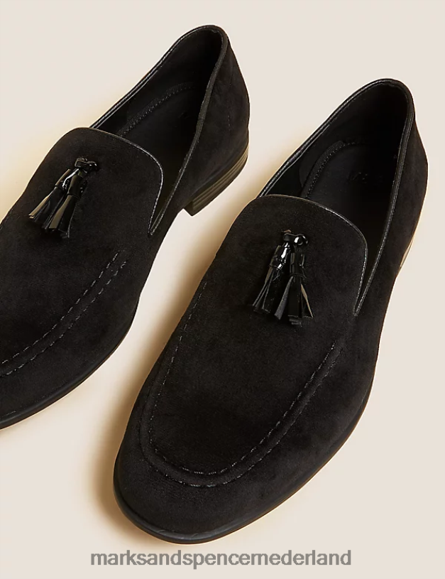 Marks & Spencer Heren fluwelen instappers zwart schoenen N8VZP5693
