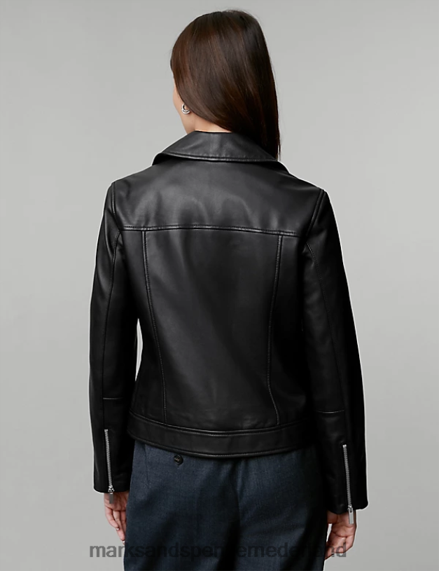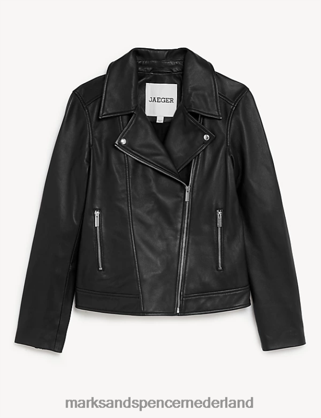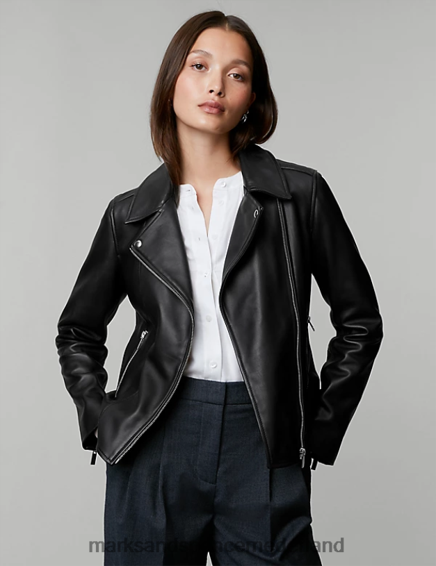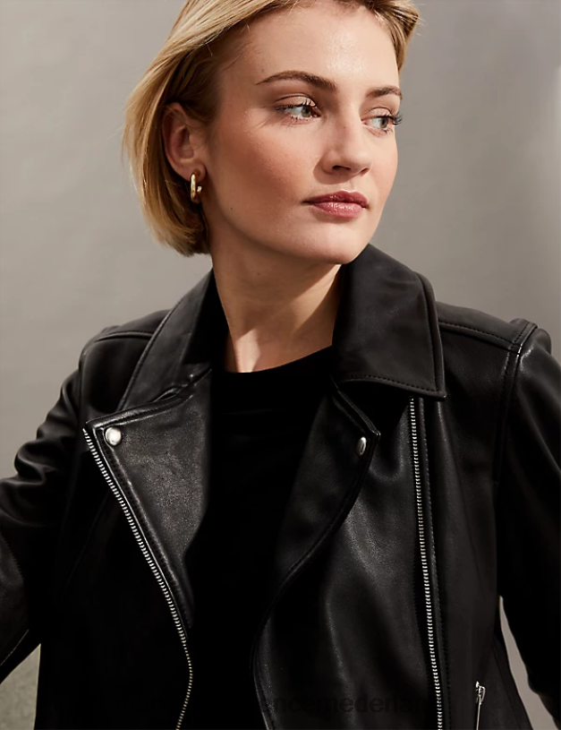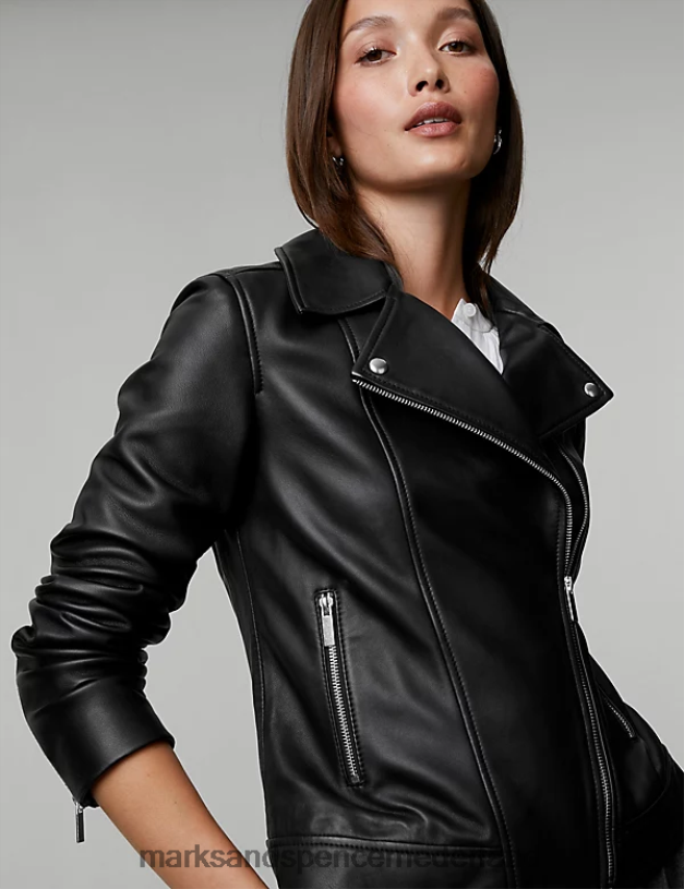 Marks & Spencer vrouwen leren bikerjack zwart kleding N8VZP1142