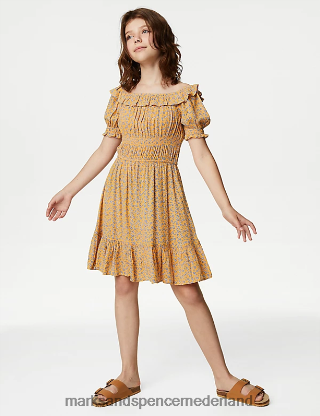 Marks & Spencer kinderen gebloemde jurk oranje mengsel kleding N8VZP8922