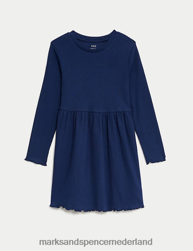 Marks & Spencer kinderen katoenrijke geribde jurk marine kleding N8VZP8844