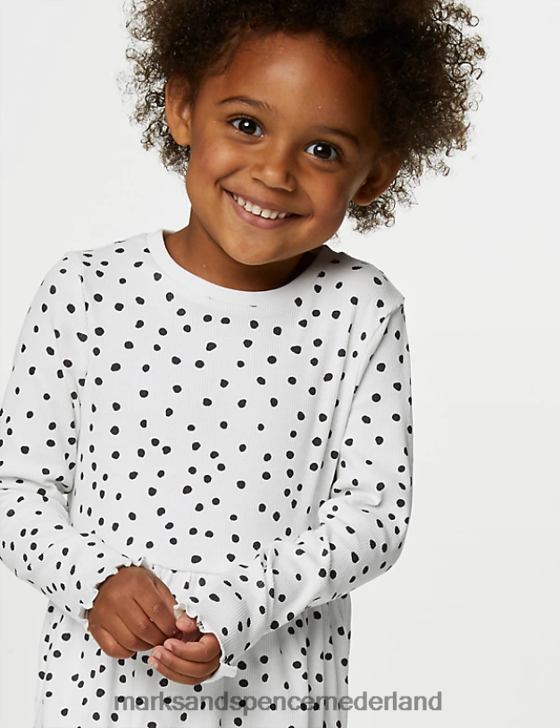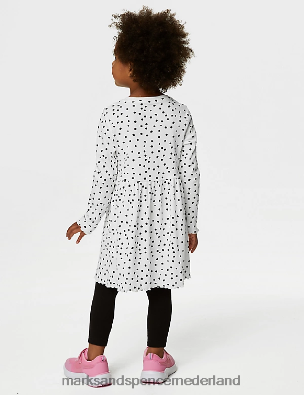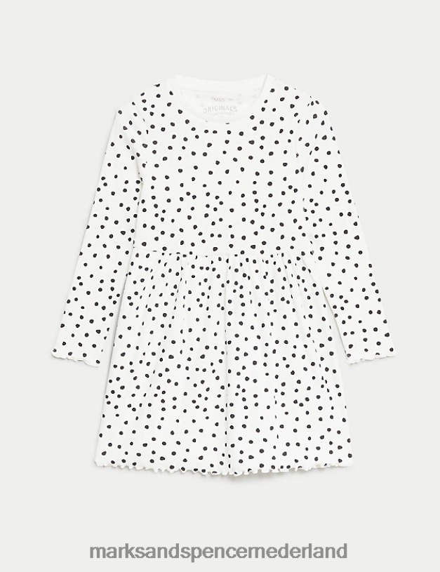 Marks & Spencer kinderen katoenrijke gevlekte jurk wit kleding N8VZP8845