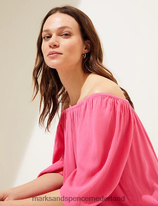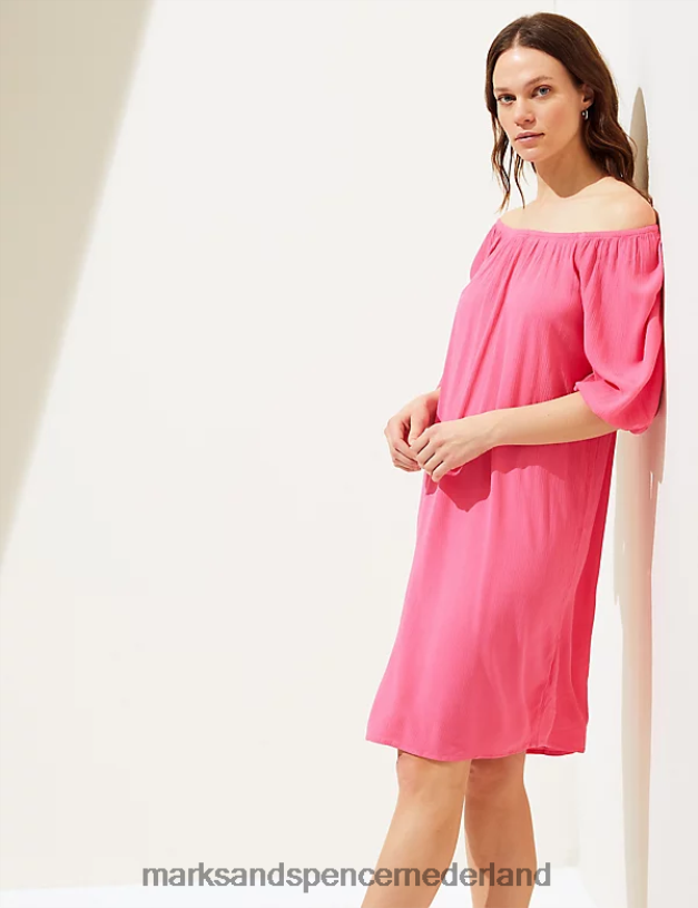 Marks & Spencer vrouwen bardot knielange shiftjurk kauwgom kleding N8VZP2176