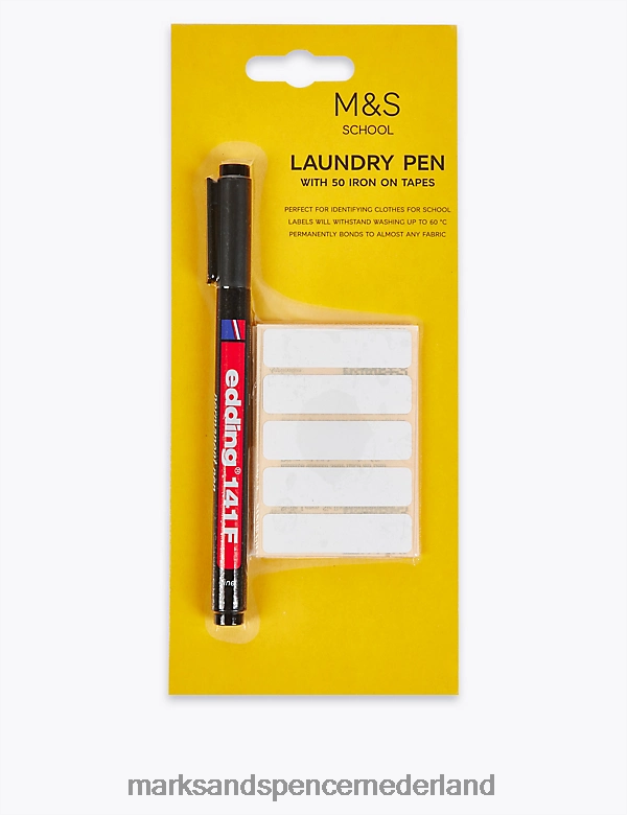 Deze handige permanente marker bespaart u kostbare tijd aan het begin van het schooljaar en maakt het identificeren van het uniform van elk kind een fluitje van een cent. Samen met een set van 50 opstrijkbare naambandjes hecht deze waspen zich aan vrijwel elke stof en is hij bestand tegen wassen tot 60ºC. De opstrijkbare naambandjes vervangen de ouderwetse innaailabels en besparen u essentiële tijd en moeite voordat het schooljaar begint. Dit product is ideaal voor gebruik met slijtvaste gymsets en uniformen, zodat kinderen hun schoolkleding gemakkelijk kunnen identificeren.