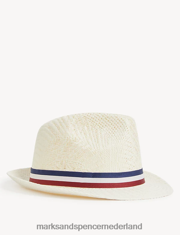 Marks & Spencer Heren getextureerde trilby witte mix accessoires N8VZP6421