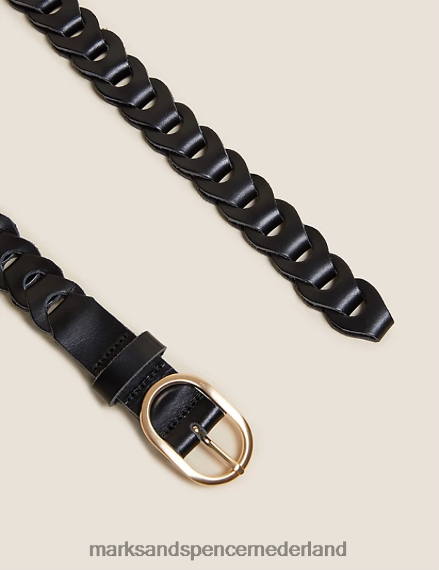 Marks & Spencer vrouwen leren geweven jeansriem zwart accessoires N8VZP2014