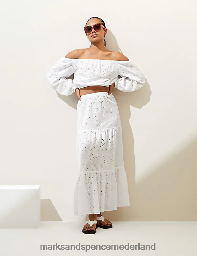 Marks & Spencer vrouwen Getextureerde maxi-gelaagde strandrok wit kleding N8VZP2290