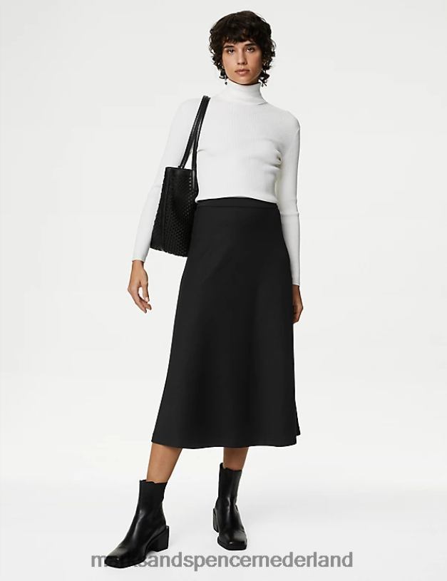 Marks & Spencer vrouwen Halflange cirkelrok van jersey zwart kleding N8VZP1742