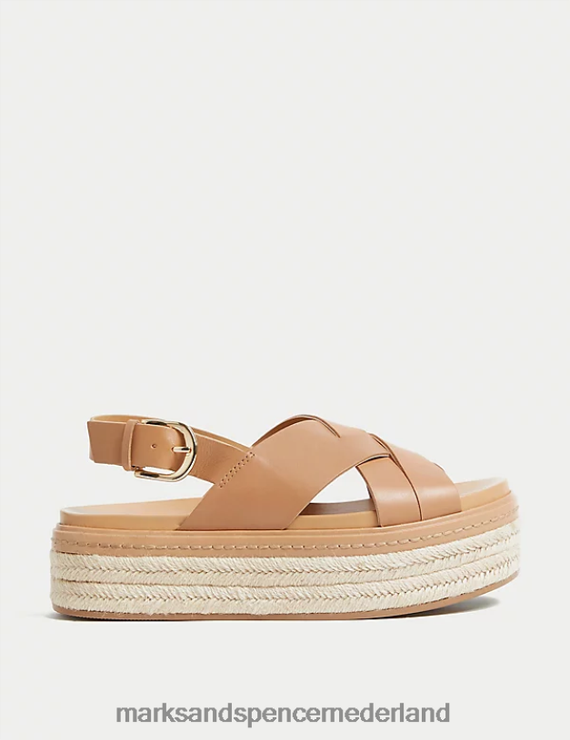Marks & Spencer vrouwen leren gekruiste platte sandalen bleekbruin schoenen N8VZP2448