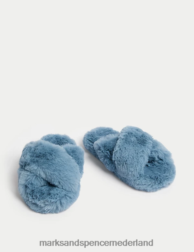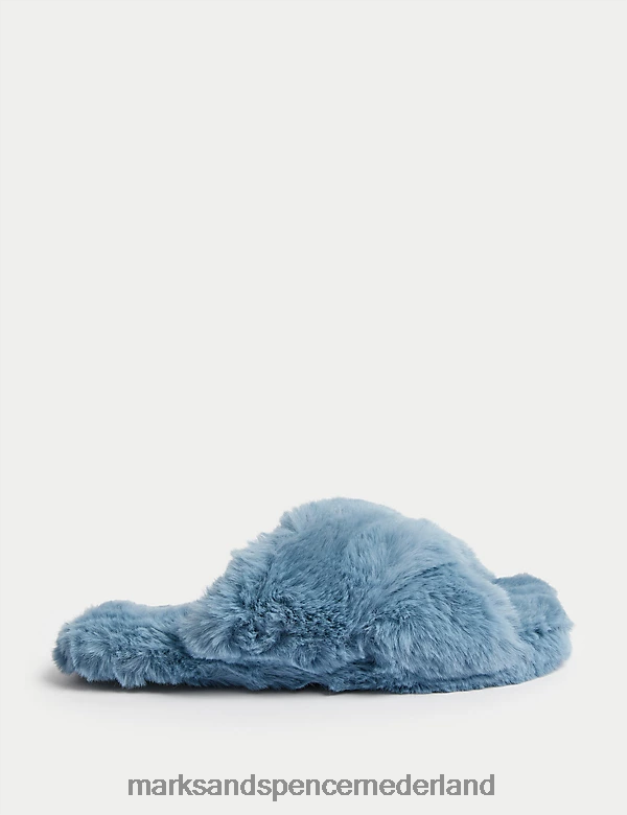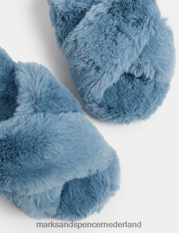 Marks & Spencer kinderen Pantoffels van imitatiebont blauw schoenen N8VZP9020