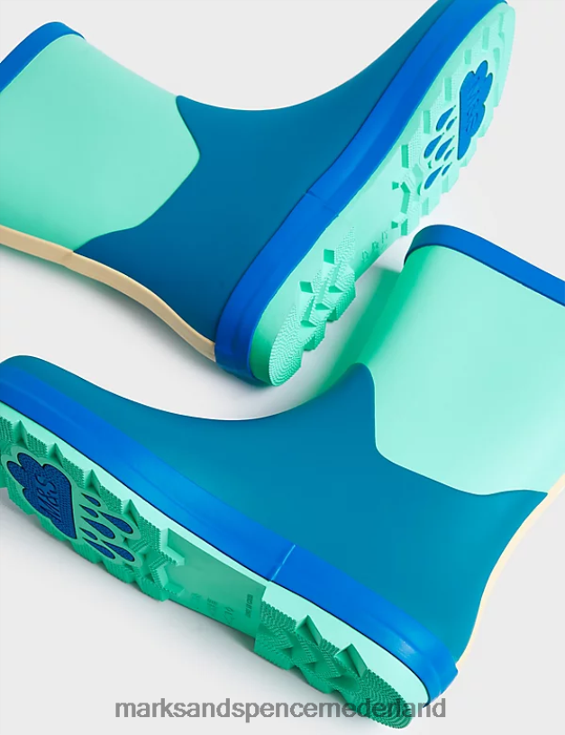ze zullen veel spetterend plezier beleven in deze rubberlaarzen met kleurblokken. Gemaakt met een antibacteriële Freshfeet-afwerking die geurveroorzakende bacteriën helpt bestrijden. de gripzolen zijn voorzien van een aantrekkelijk regenwolklogo.