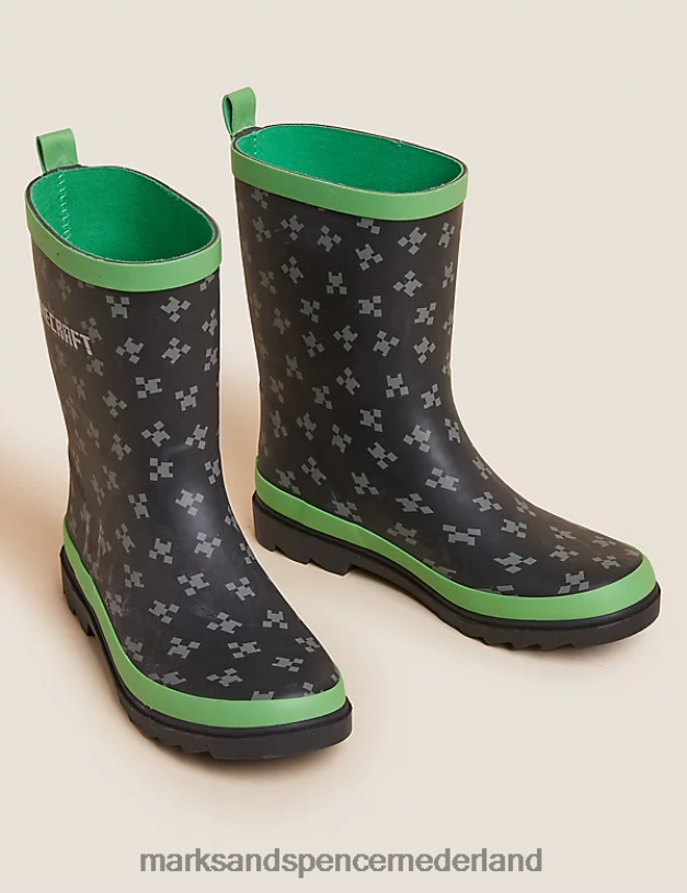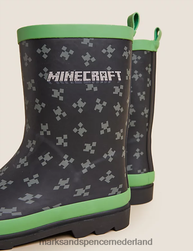 Marks & Spencer kinderen minecraft laarzen zwarte mix schoenen N8VZP8629