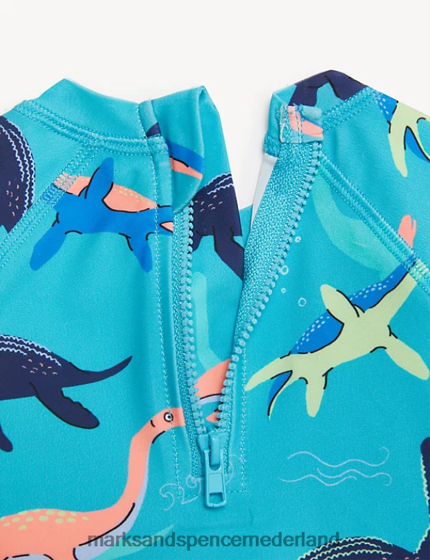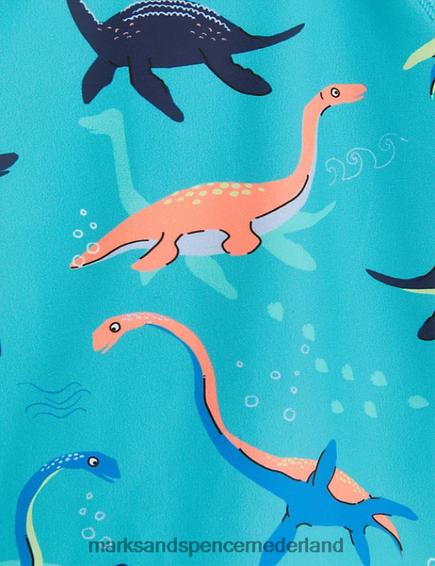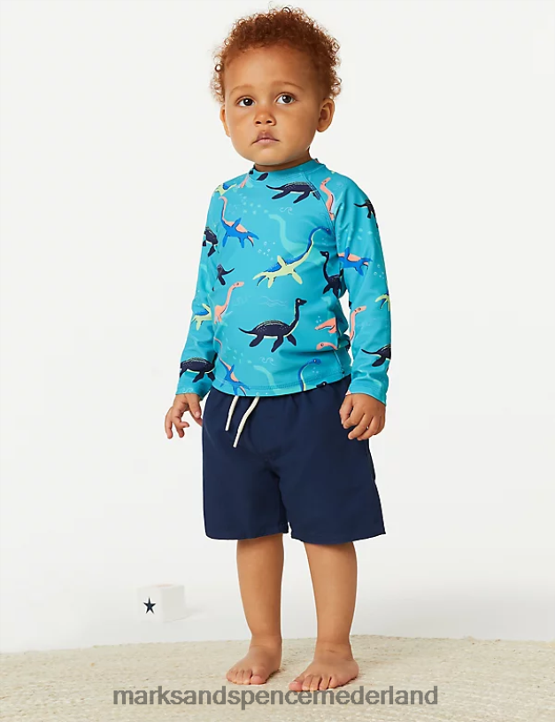 dino-fans zullen deze zwemoutfit graag aan het water dragen. voorzien van een top met lange mouwen, een all-over dinosaurusprint en een ritssluiting aan de achterkant. geweven shorts hebben een tailleband met trekkoord voor een veilige, comfortabele pasvorm. de chloorbestendige stof zorgt ervoor dat de outfit langer meegaat, terwijl onze slimme upf50+ technologie helpt beschermen tegen schadelijke uv-stralen. goedgekeurd door de British Skin Foundation. deze zwemoutfit maakt deel uit van ons mini me-assortiment, met een versie voor volwassenen in onze herenkledingcollectie.