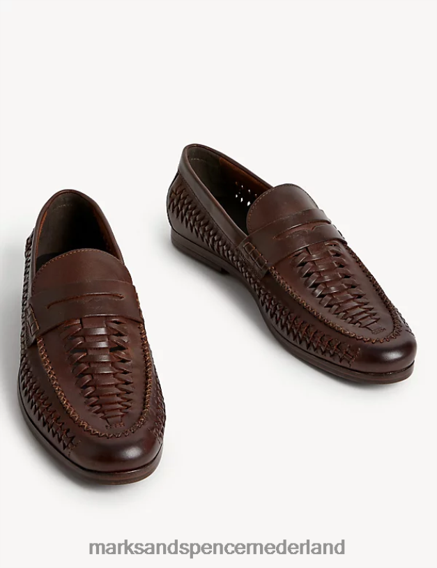 Marks & Spencer Heren leren loafers bruin schoenen N8VZP5052