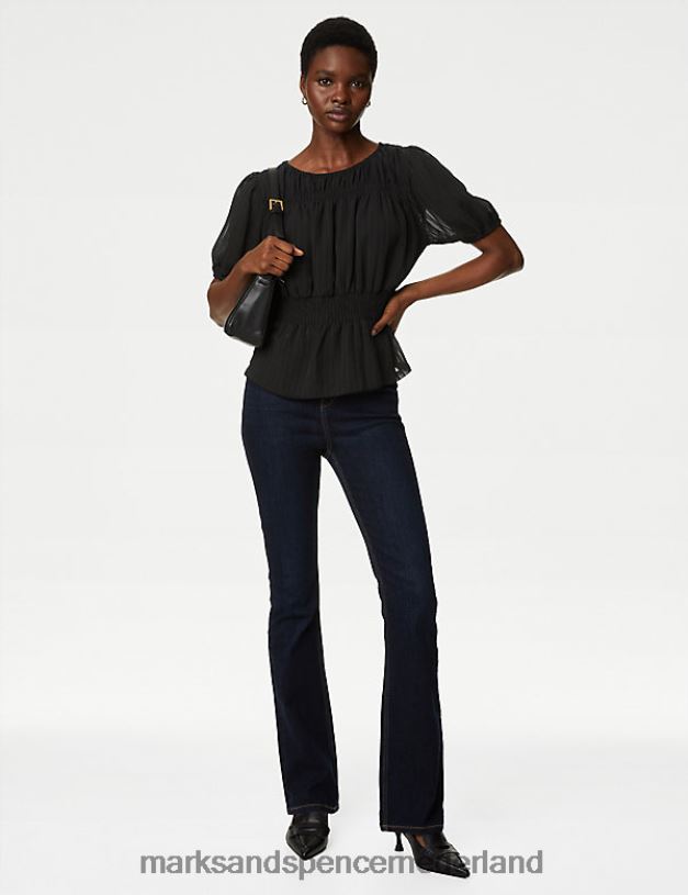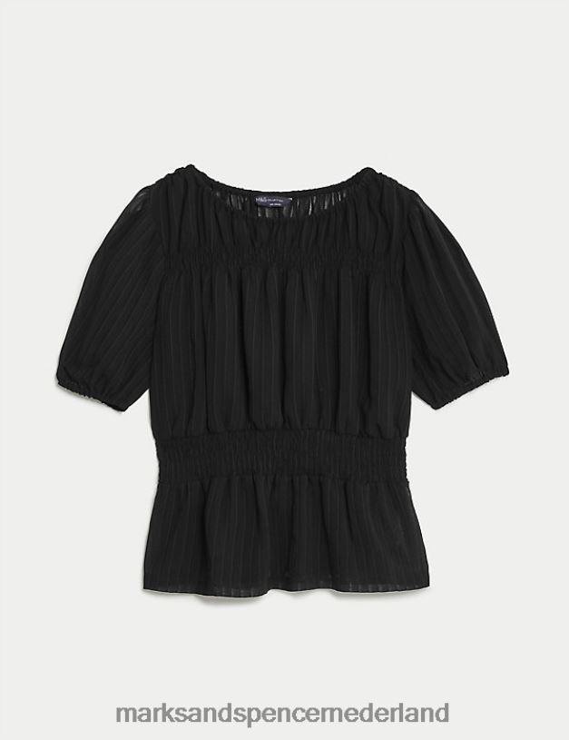 Marks & Spencer vrouwen getextureerde gesmokte top zwart kleding N8VZP2168