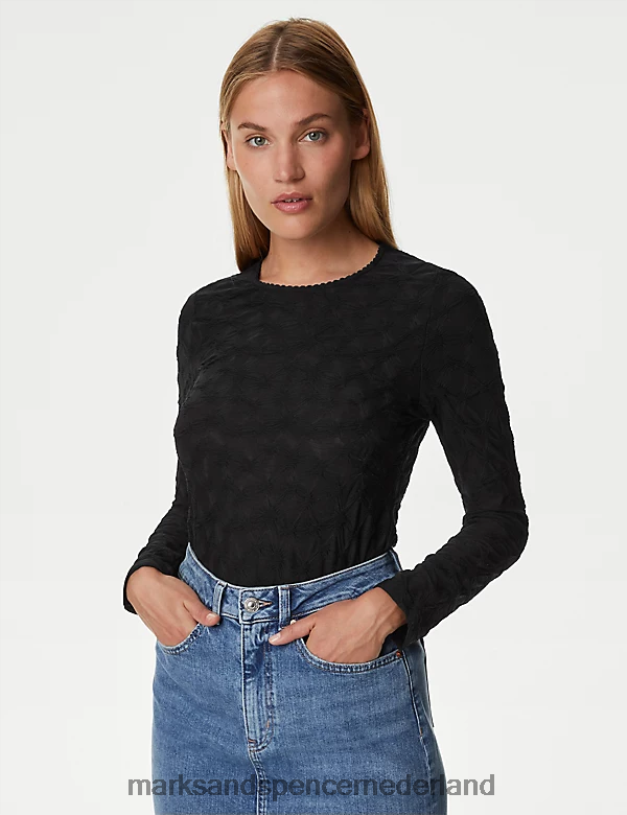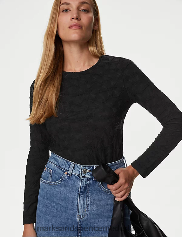 Marks & Spencer vrouwen Jersey getextureerde top zwart kleding N8VZP604