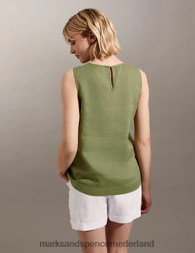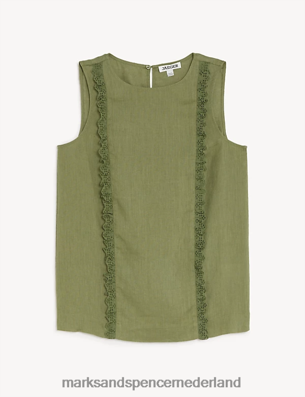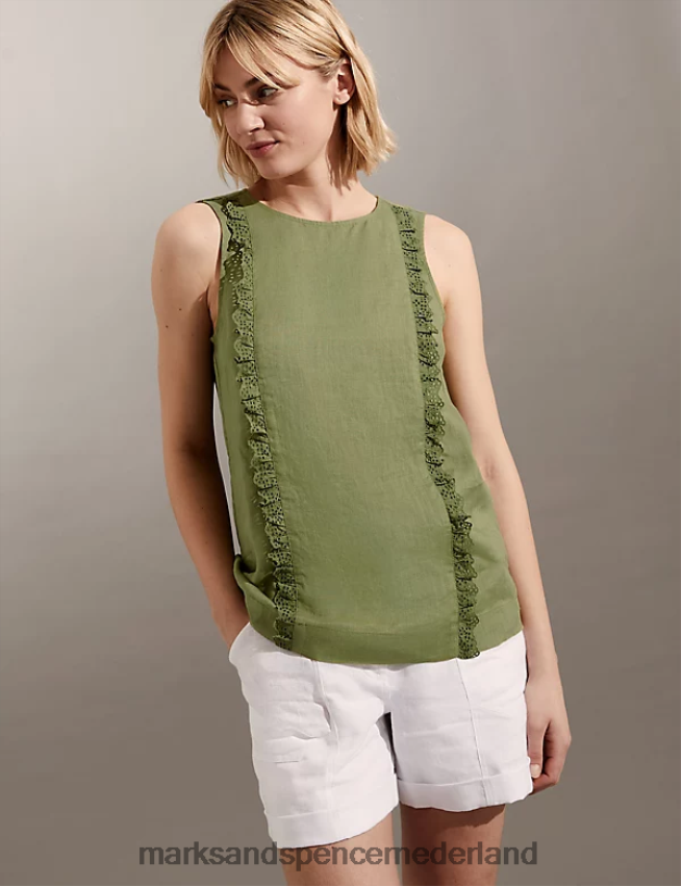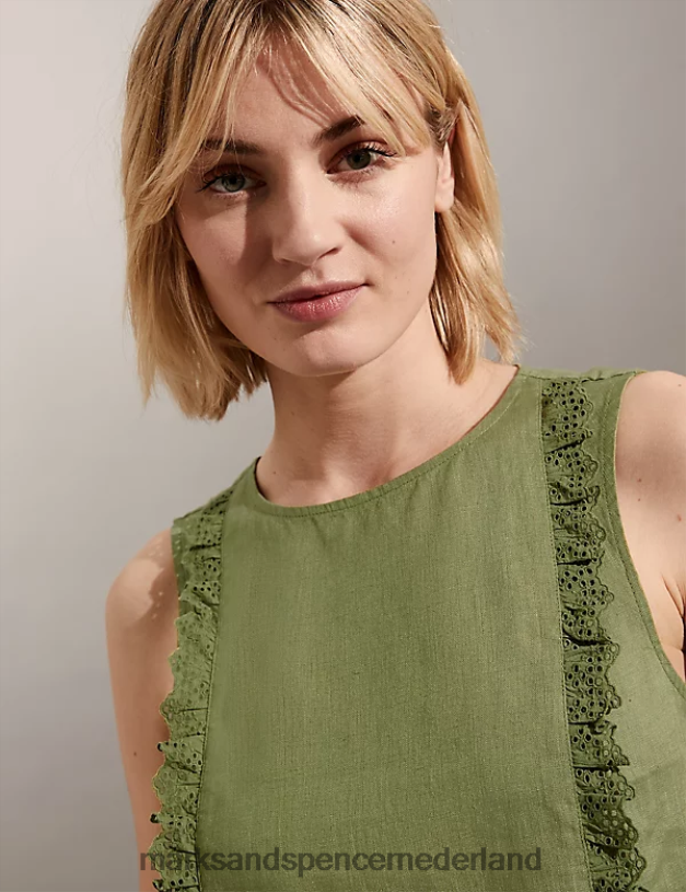 Marks & Spencer vrouwen puur linnen broderievest khaki kleding N8VZP1836