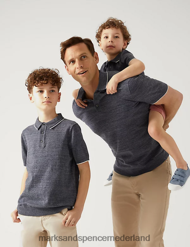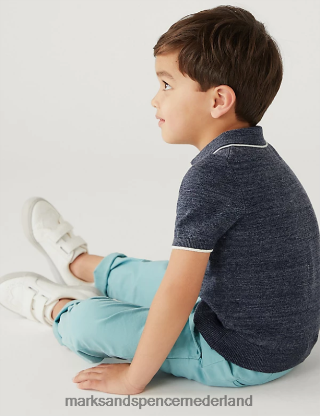 Marks & Spencer kinderen katoenrijk gebreid poloshirt marine kleding N8VZP8219
