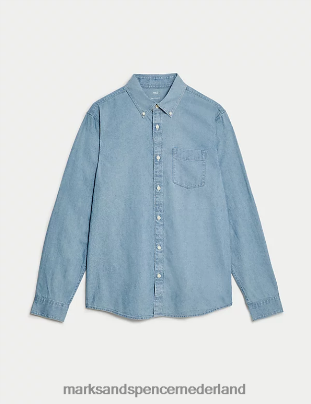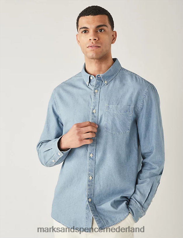 Marks & Spencer Heren denim overhemd lichtblauw kleding N8VZP5299