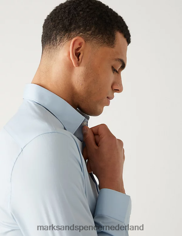 Marks & Spencer Heren slim-fit katoenrijk stretchoverhemd lichtblauw kleding N8VZP5980