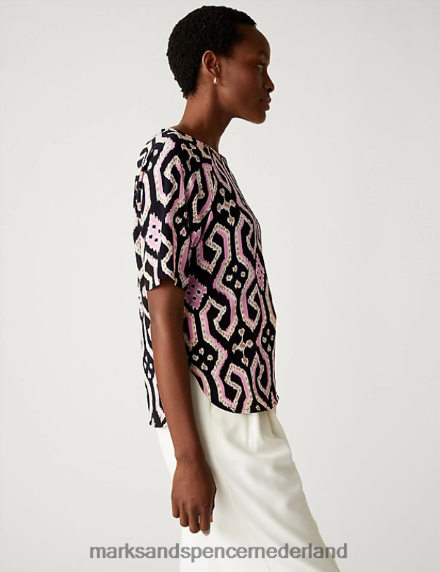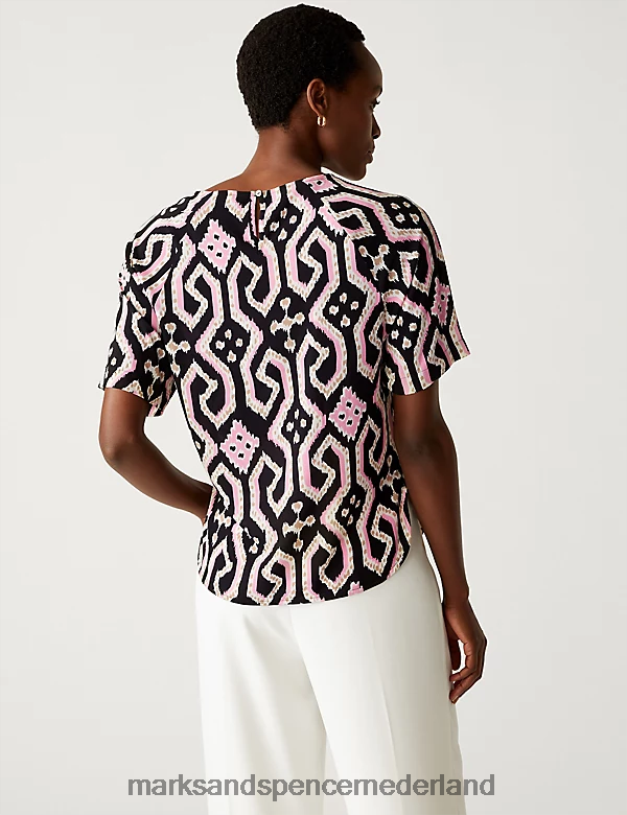 Marks & Spencer vrouwen bedrukte bovenkant roze mix kleding N8VZP1842