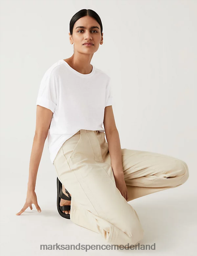Marks & Spencer vrouwen linnenrijk t-shirt zacht wit kleding N8VZP2846