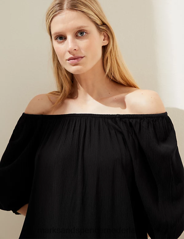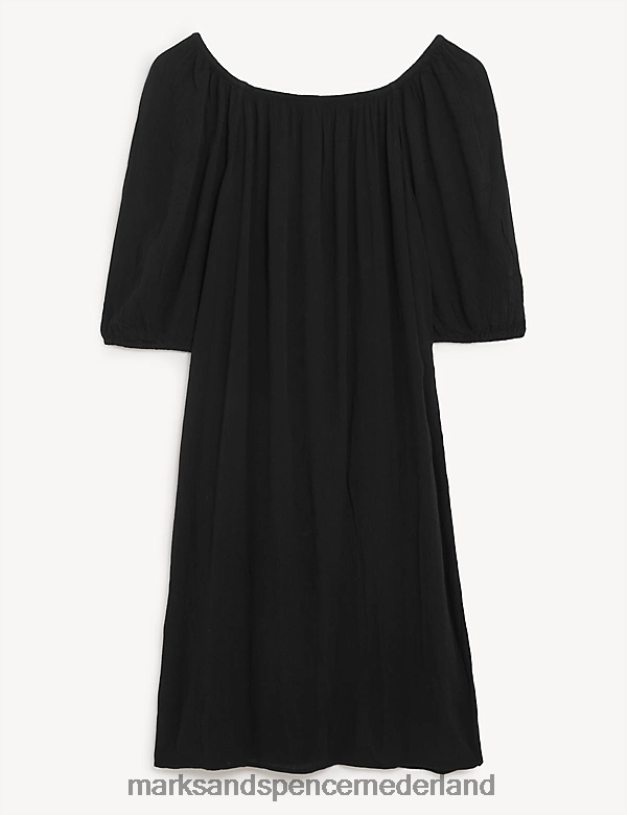 Marks & Spencer vrouwen bardot knielange shiftjurk zwart kleding N8VZP1858
