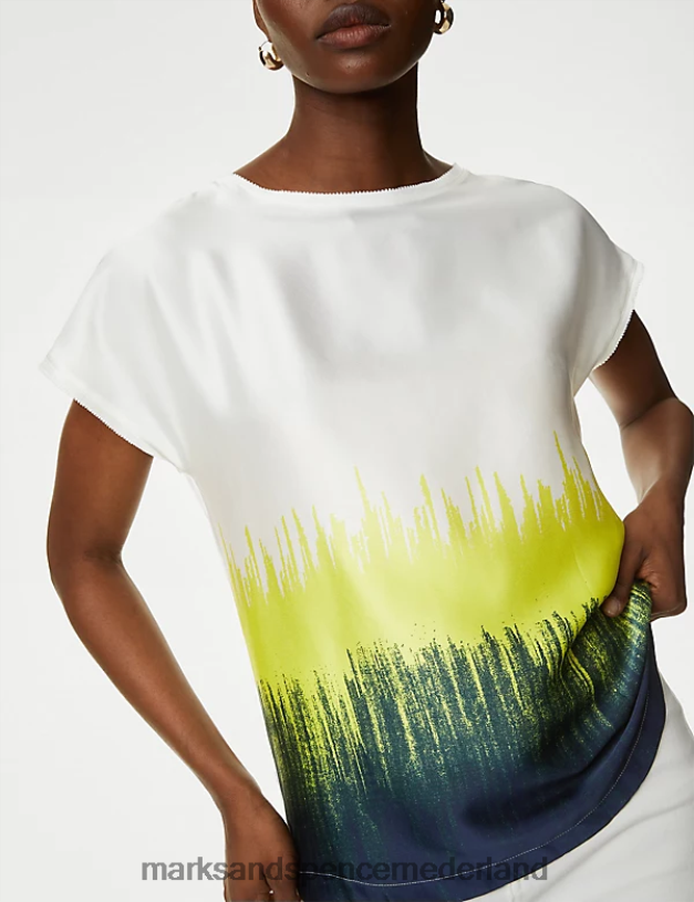 Marks & Spencer vrouwen bedrukte bovenkant limoen mengsel kleding N8VZP393